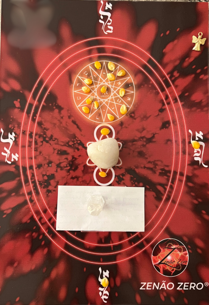 Através do pêndulo os símbolos necessários serão identificados e após o término você será informada ou informado de tudo que saiu e em seguida eu plantarei os grãos utilizados para auxiliar na manifestação do seu objetivo! Isso mesmo! Essa placa não usa cristais, mas grãos que serão plantados, como uma forma de entregar a nossa Mãe Terra aquilo que precisa ser fortificado e fertilizado para gerar os seus frutos!